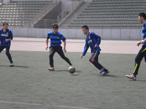 3月20日 中午12:40,我院与信息学院的足球赛在东区足球场拉开了序幕。这场比赛为五人制,全赛时间为40分钟。