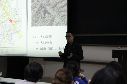 林老师讲到,规划主要是从经济发展,人口发展,社会发展,基础设施这四个方面合理分配土地。他以甘肃省庆阳市环县城市总体规划为例,从各乡镇的产业发展,人口分布,设施布点等方面进行了详细的分析。
