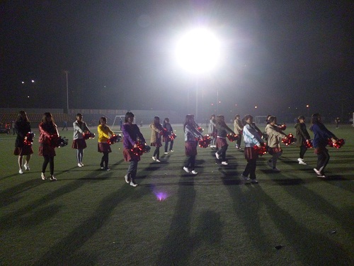 晚上八点,我院啦啦操队员来到渭水校区东区运动场,在领队与负责人的带领下,开始了紧张的训练,由领队带领全体队员练习啦啦操,熟悉啦啦操的全套动作,体悟各动作的要领。队员们秉着认真的态度,很快就进入了训练状态。学生会体育部更是切实负起责任,对我院啦啦操训练的进展进行指导监督,并检查训练的整体效果,指出其中存在的不足,使队员们的动作更到位。生活部则负责训练的后勤工作。过了一会,队员们已经练得很好了,每位队员的动作十分到位,全体训练能做到动作熟练整齐,姿态优美。