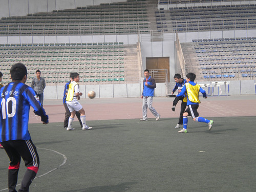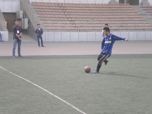 下午3:00,我院与公路院进行最后的对决。因为公路院实力超群,踢法勇猛,我院着实踢了一场苦战,但也发挥出了超强的个人水平和团队合作能力。整个比赛下来,虽然我院不占优势,但九号朱俊烨和十二号潘仁安各自的进球也掀起了现场的一片欢呼。而真正显出我院的高水平的是守门员李兴,他屡屡凭借敏捷的动作拦截下对方来势汹汹的进球,一次次地用身体挫败对方的进球。