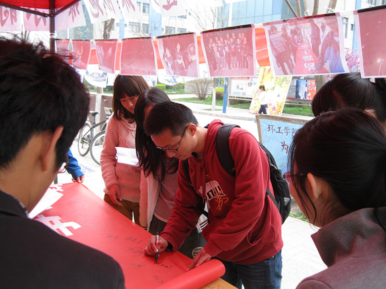 活动于3月21、22日在长安大学渭水校区东西区食堂门口进行了前期宣传,主要针对“低碳”、“环保”等话题进行了环保承诺签名,并向在校学生介绍“地球一小时”活动及其意义。本次活动的宣传阶段面对当前宣传单的大量浪费情况,我们本着节约、环保的原则,争取不发放一张宣传单,通过口头宣传和照片宣传以及志愿者进宿舍宣传的方式达到我们的宣传效果。
