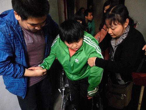 其中,有一个叫张博的孩子,因有残疾障碍而坐在轮椅上。他告诉志愿者他喜欢篮球,他对志愿者们总是真诚地说“Tank you”,他很自豪的说他有一个英文名叫Mike,他还喜欢周杰伦的歌。虽然他说话很慢,又吐词不清,但志愿者们仍然耐心地与他聊天。在这里,志愿者跟孩子们进行了良好的交流,心与心的距离更近了一步。