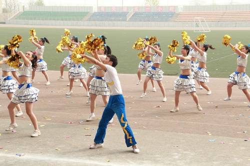 比赛当天,观众涌动,各学院代表队也均是盛装待发。我院代表队作为首只出场队伍,队员克服了紧张的比赛情绪,自信、到位、有力的完成了各个比赛动作,并以优美的动作、热烈的感染力与充满青春活力的精神风貌赢得了评委和观众的阵阵喝彩。表演完毕后五位评委均给出了高分,在其他一些学院有专业队员参与的情况下,我院队伍表演的质量与取得的成绩丝毫不落下风,这尤为值得称道。