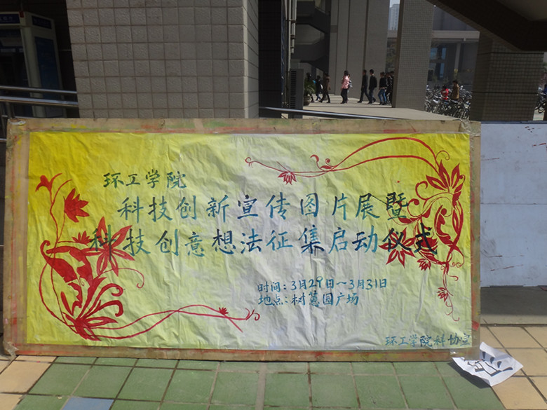 2013年3月29日至31日,由环境科学与工程学院科技创新与创业协会主办的科技创新宣传图片展暨科技创意想法征集启动仪式,将在东区树蕙园广场正式拉开维幕。各项筹备和前期宣传工作有条不紊的展开。