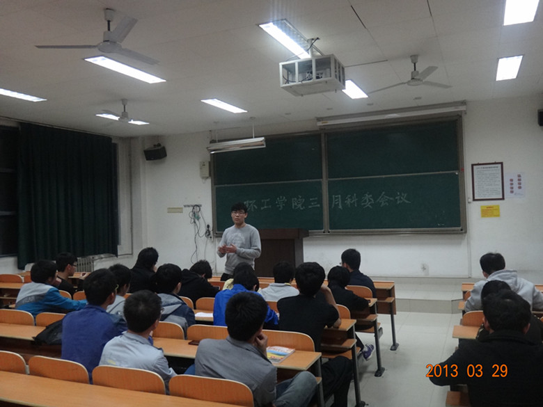 2013年3月29日21:00,环工学院科技创新与创业协会在WM1213召开三月份科委会议。参加本次会议的有科 协主席马伟亮、秘书长张嘉仁、各部长及大一大二各班科委。会议由主席马伟亮主持。