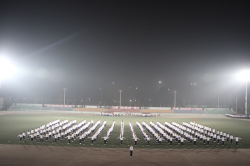 环工学院是第九个出场,当主席台宣布环工学院入场后,我院方阵迈着整齐划一的步伐,喊着激昂嘹亮的口号向预定位置走去。到达指定位置后,环工学院方阵有序的散开,方阵最后变成“HG”(环工)字样,赢得开台上阵阵掌声。随后,我环工学院方阵按广播体操队形散开,在第九套广播体操的音乐中,同学们都以最认真的态度面对比赛,每一个动作都精益求精。在欢快的音乐声中,同学们如同一只只初春的飞燕,轻盈并且有活力,他们出色的表现为评委和看台上的观众带来了一场视觉盛宴。音乐刚落。看台上掌声四起,环工学院方阵有序退场。