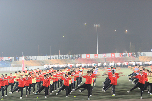 3月29日,晚7:00,长安大学主办的2012级广播操比赛在东区田径场拉开序幕。此次比赛共有14个学院积极参加,声势浩大,可谓是长安大学新生展现自身风采的一大盛事。
