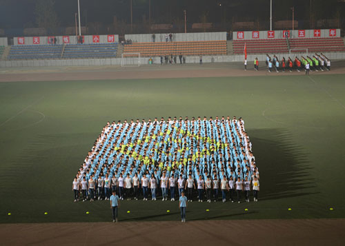比赛还没开始,我院的新生们就已经摩拳擦掌、跃跃欲试了。随着比赛的进行,我院的同学们开始正式进行他们的表演。我院531名运动员踏着整齐的步伐,昂首朝着主席台前走去,步伐整齐而利落,“汗血宝马,奔驰天下,汽车健儿,赛场争霸”的口号更是整齐嘹亮,响彻云霄。场上自信认真,每一个动作都干净利落,我院学生的精彩表现博得了主席台领导以及现场观众的热烈掌声。