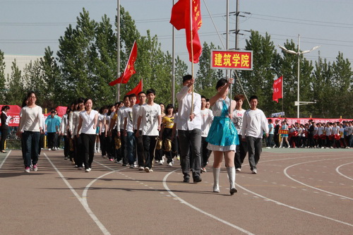 开幕式的第一项,是各个学院的运动员入场。我们建筑学院的同学们迈着整齐的步伐,昂首阔步地走向主席台。这是一个热情如火,团结向上的集体。他们努力拼搏,不甘落后。今天,他们本着友谊第一,比赛第二的宗旨,个个精神抖擞,想在赛场上一争高下。我们热情,我们骄傲,为我们学院,为我们的运动健儿们。他们将要参加田赛和径赛中的很多项目,为自己,为学院赢得荣誉。他们自信向上,充满了青春的蓬勃朝气。看着他们有力的步伐,就仿佛看到了他们在运动场上矫健的身姿,我们为他们呐喊,为他们喝彩,为他们加油! 在赛场上,希望他们可以勇往直前,赛出水平。今天的体育馆属于他们,我们目光的焦点属于他们,荣誉属于他们!他们一定会在我们的无数期待和加油中迎接胜利!