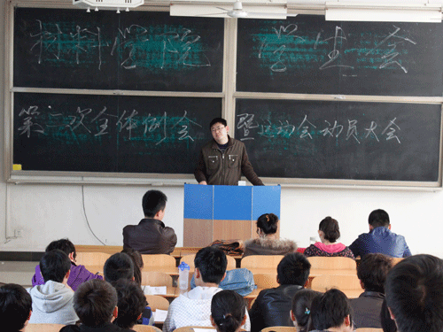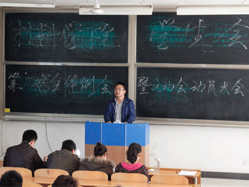 4月9日中午12时40分,我院团委书记杨树老师,团委副书记刘彤,11级辅导员刘珺老师及12级辅导员况栋梁老师,学生会副主席薛威携同学生会全体成员于修远1103教室召开我院学生会第二次例会暨校运动会动员大会。本次会议主要针对次日举办的校运动会相关事宜进行指导与强调。