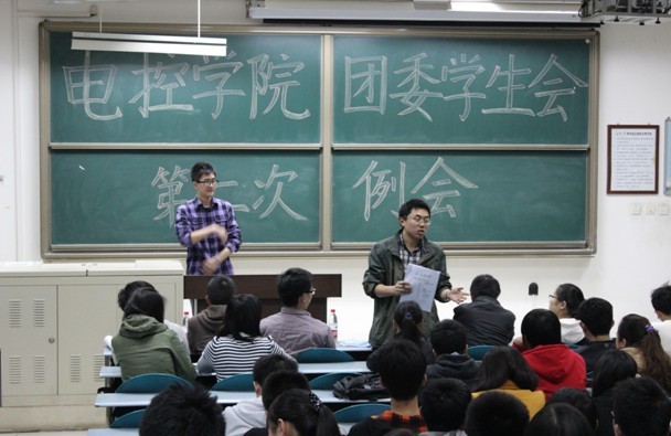 2013年4月9日晚7点,我院团委学生会在明远1303教室召开了本学年第二次全体例会。出席本次会议的不仅有团委副书记凌尧、主席丁智、常务副主席王若晨、副主席殷语晗、郝一雄以及秘书长魏子尧,而且种超老师也在百忙之中莅临此次会议。召开本次例会的主要目的是总结校运会准备工作以及对明天的2013届校级阳光运动会做详细的工作安排。例会由秘书长魏子尧主持。