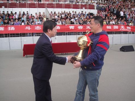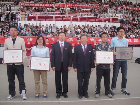 大会第四项,由校领导为获奖单位颁奖。领奖完毕后,在我院党委副书记李险峰老师高举“校长杯”时,现场气氛再次达到高潮,大家都为我建工学院获此殊荣感到高兴。辛勤的耕耘终于有了收获,战鼓擂动,正如我们的激动的心情,久久不能平息。