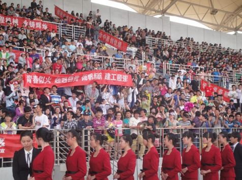 大会第三项,总裁判长罗峰宣读获奖学生组名单。获得此次运动会一等奖的学院有建工学院、经管学院、环工学院以及汽车学院。其中,建工学院以总成绩1217分位列第一,获得了代表最高荣誉的“校长杯”。所有在场的建工师生都激动的站了起来,掌声经久不息,欢呼声此起彼伏。