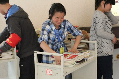 13号中午12:30,所有参加本期活动的志愿者在渭水校区南门口集合,负责人强调了纪律观念、团队意识的重要性和往返的安全问题。之后,全队人精神饱满的前往图书馆。到达图书馆并与工作人员完成接洽后,全队人分为5组分别进入不同的阅览室,工作人员耐心地教同学们如何分书、上书和整理书架,然后将各组同学再分到不同岗位上去。同学们认真记下分书和上书的规则后就积极地投入了工作。面对成百上千需要上架和整理的图书,每个人都耐心细致,仅用3个小时的时间出色地完成了工作,也获得了图书馆方面负责人的称赞。在本次活动中,每个队员都做到了不怕苦,不怕累,积极主动,互帮互助,很好地体现出了志愿服务精神和团队意识,也展现了长大学子的风采。