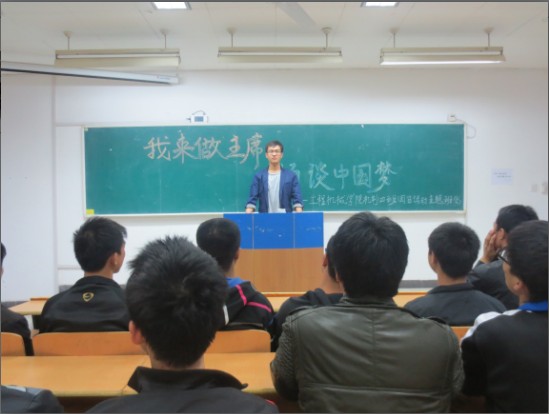 2013年4月10日,机械设计制造及其自动化四班全体同学在修远3405举行了“中国梦▪青春行”主题团日活动的第一个活动“我来做主席 畅谈中国梦”模拟会议活动。