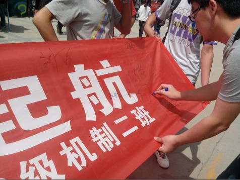我们在4月14日晚就宣传活动向同学们做了基本要求,定下宣传人员,并给他们做了基本的分工。4月15日最后一节课下了,同学们就迅速去了食堂门口,拉起横幅,向来往同学介绍我班团日活动,并邀请他们在我们的横幅上签上名字或写下梦想宣言。