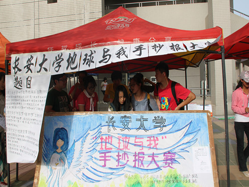4月16日下午,长安大学“地球与我”手抄报大赛报名活动在我校东西区食堂门口进行得如火如荼。此次比赛,由长安大学资源学院学生会承办,旨在让同学们关注地球、珍爱地球,提高我校学生节约环保意识,促进人与自然和谐发展。