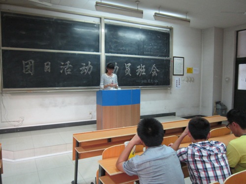 2013年4月14日下午18点30分,建工学院造价一班“绿色足迹·圆梦中国”主题团日活动动员班会于修远教学楼2205教室成功召开。参加本次班会的有团支书王小今,班长杨婷婷以及全体同学。