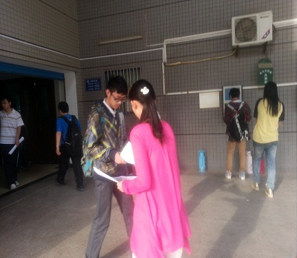 团日活动上同学分发宣传单