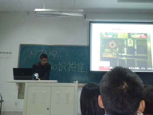 4月17日晚,自动化三班同学和部分其他班级的同学在渭水校区WM1209举行了H7N9知识讲解。活动以宣传委员的H7N9 ppt 开始,将大家迅速带入活动主题,从病毒构成,传染源,传播途径到预防措施,宣传委员都给大家以图片和少数文字形式展现,让大家在轻松的浏览中了解了这次禽流感。大家刚开始看到可怕病毒微微恐惧,但当学习到预防措施,大家紧张的神经稍稍松弛了。随后,同学们进行流感常识问题的抢答活动,学习委员提问,同学进行抢答,最后对答对问题最多的同学奖励了小奖品。