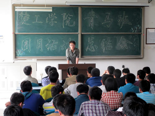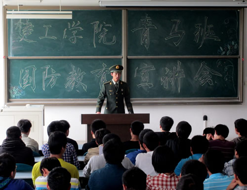 为加强同学们的国防意识,提高对国防的的认知,2013年4月18日中午12:30,建工学院青马学研班在长安大学渭水校区明远教学楼1205教室开展了国防教育宣讲会,会议邀请了11级土木11班国防生王新河同学为大家讲解有关国防教育的知识。