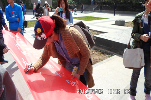 早晨八点,全体同学在树蕙园广场集合,集体前往西安交通大学,于上午九点三十分抵达目的地。四月正值交大樱花开放之季,在交大同学的指引下,同学们观赏了美丽的樱花,感受了春天大自然的美好以及交大古朴纯净的校园氛围。随后,同学们来到交大钱学森图书馆,图书馆内浓厚的学术氛围给同学们留下了深刻的印象,同时也拓宽了同学们的视野。紧接着,同学们在图书馆前的广场上拉起了“樱花之季迎交流,交大之行赢友谊”的横幅,向广场上的同学们发起了签名活动,并与他们进行了亲切的交流。两校同学之间互相交流,互相了解,互相学习,获得了珍贵的友谊。最后,同学们在交大思源学生活动中心门前合影留念。