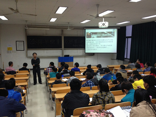 本节课开始前,宋春红老师首先为4月20日早上8点02分发生的四川雅安7.0级大地震中的遇难者表示哀悼,并提议用白色的粉笔书写黑板字来为遇难者哀悼。本节课主要包括3个方面:第一,解读大学生组织工作职能,夯实组织基础。他提出要明确学校各种组织、社团的职能,要求组织与班级相联系,发展班级基础。第二,做好大学生组织建设方面,创建优秀集体。他解释了党支部、团支部等名词的内涵,要求各组织要按照规定合法、合理的进行建设,相互竞争,创先争优,争做优秀组织。第三,明确大学生干部的要求,发挥带头作用。他一针见血地指出当前大学生干部中存在的问题,要求学生干部、党员要发挥先锋带头作用,为群众做好榜样。本节课结束前,宋春红老师祝福所有成员能顺利、开心地度过大学四年的幸福时光。