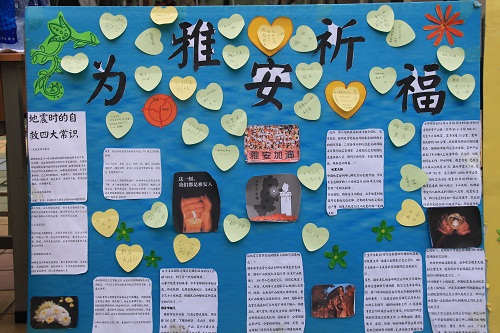除此以外,为了寄托同学们对于雅安地震灾区的关心和祝福,普及预防地质灾害意识,我们特地设置了地质灾害相关知识展示,为雅安祈福的特别模块,在向同学们传授预防地质灾害、自救互救知识的同时,还寄托了我们对于灾区人民早日从灾难当中恢复的美好祝愿。同时还设置了一个互动答题活动区,给同学们提供了一个学习展示自己的平台,同学们积极参与答题环节,气氛十分热烈。