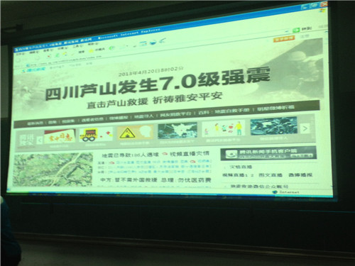 4月20日 四川雅安发生了7.0级地震,同学们对震区的情况都十分关心。首先,班长组织全班同学观看了雅安地震的新闻直播,搜集了与地震相关的资料和遇险时的自救措施。接着,大家一起点燃了蜡烛,为雅安人民祈福,用自己的一份微薄的力量带给他们温暖和希望。