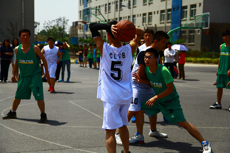 随着哨声响起,各方队员都围成一圈大喊加油后比赛正式开始。队员们都迅速进入状态,个个雄姿英发。在场上你争我夺,你攻我守,展开了一轮轮的投球,投球动作帅气利落,队员激情高涨,争夺异常激烈。同时观众呐喊助威,球场气氛十分活跃。三个场地气氛一个比一个热烈。每队队员们都表现出了强烈的取胜欲望,比赛中有很多出色的配合以及迅速的回防。场上的健儿们激情高涨:飞奔,传球,防守,灌篮。各方势均力敌,你追我赶,不分胜负,比赛进行的扣人心弦。