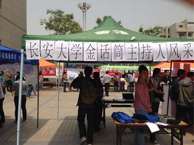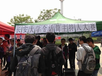 4月27日,地测学院承办的“金话筒”主持人大赛报名进入最后一天,西区食堂租借的帐篷前还是有很多踊跃参加的报名者。从下午5点到6点,短短一个小时,又有十多位报名者递交了报名表。