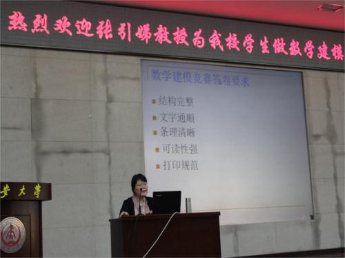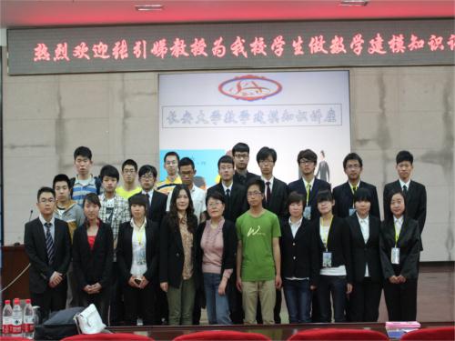26日晚7点,讲座正式开始。张引娣老师从“什么是数学建模”、“数学的作用”、“数学建模无处不在”、“数学建模的常用方法、参考书”、“优化模型”、“数学建模竞赛要求”以及“数学科学发展观”等七个方面详细讲述了数学建模的相关知识。认真剖析了历届数学建模试题,为有意向参加竞赛的同学提供了部分技术支持。然后,她详细讲解了数学建模竞赛的要求与技巧,对本届参赛选手起到重要的指导作用。观众互动环节将讲座推向高潮,对于前期调研中征集的问题和现场同学们纷纷提出的疑问,张老师认真地做了回答,气氛热烈融洽。最后,讲座在张老师与科协工作人员的合影留念中结束。