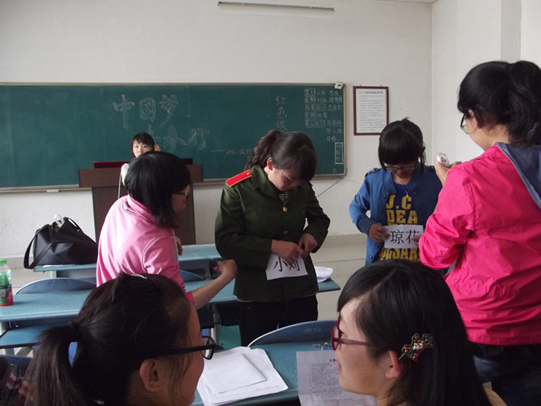 话剧表演结束后,环工班举行“红歌我知道”大型红歌会,分组竞赛,场面十分紧张欢快,唤起了同学们的红歌记忆。