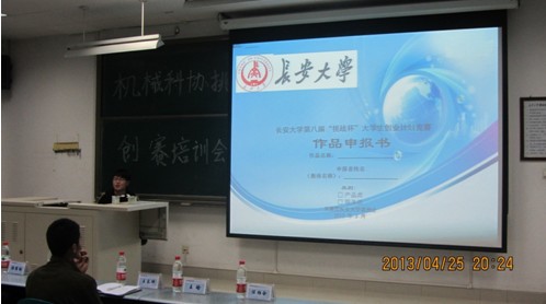 2013年4月24日晚,机械科协在明远1306教室举办了主题为“如何做好创业计划竞赛”的培训会。本次培训会由我校校科协挑战杯部部长葛成龙担任主讲,机械科协全体同学参与了此次培训。