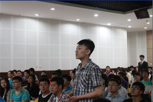 在校团委副书记张永老师介绍了杨光辉老师的主要经历和情况后讲座正式开始。讲座以《海外大学人才培养与我校双语复合型人才的创新教育》为题展开。杨老师首先讲了自己的故事,以自己的亲身经历来鼓励感染同学。他从自己的学生时代讲起,用幽默的语言讲述了自己的留学经历,以及回国后献身祖国公路交通事业的各种事迹,使在座的同学们对自己的未来充满了憧憬。杨老师还讲到了目前海外人才的需求态势,对海外留学的形势、海外留学的成本思考以及当代大学生应何去何从等问题作了详细的解读,并提出自己独特的观点。在谈到国内大学毕业生就业形势每况日下时,他话锋一转,对国内外的教育差异进行深入的对比,并提出了关于“教”与“学”的“改”与“变”,他凭借自己丰富的阅历和见识,提出了独特的见解,对综合素质培养的联动效应、学习与创新的“金字塔”、体验式教育、教学改革的尝试等都作了详细独到的阐述。