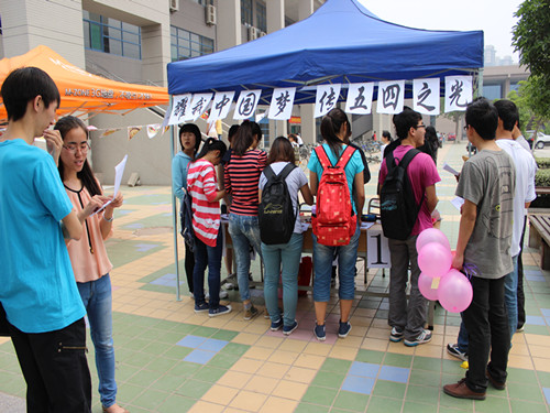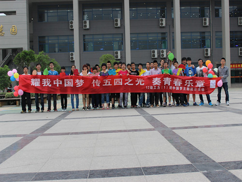 为弘扬五四精神,传递我的中国梦,2013年5月4日,我院2012级工力一班团支部在长安大学渭水校区树蕙园广场隆重举办了“耀我中国梦 传五四之光 奏青春乐章”主题团日活动。工力一班全体同学积极主动地做好自己的工作带领和指导其他渭水学子参加了我们的活动。 活动具体有以下几个环节,其一,:我们积极主动地引导前来的路人在纸上写下对五四精神的感受并将它们贴到气球上挂在横幅上;其二,:我们让前来的同学在我们事先制作好的纸板上自行设计关于绿色,环保,为雅安祈福,为甘肃加油的标语.我们又安排大家分别在东区和西区将这些标语安放以起到宣传作用.最后我们全班同学于下午六点钟一起在树蕙园广场拉起横幅合影留念. 历时整整一天,此次团日活动圆满结束。通过本次精彩意义丰富的团日活动,大家都对“爱国、民主、进步、科学”的五四精神有了更加深刻的了解,也将五四精神具体体现在了实际生活和行动中.这使本次得团日活动变得更加精彩和有意义,也更好地体现了当代大学生的中国梦!