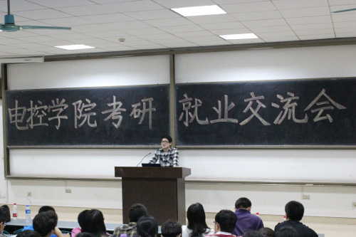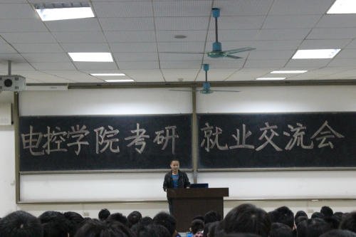 2013年5月9日晚7点,电控学院在渭水校区图文1103教室召开了考研就业交流会。本次会议旨在加深同学们对考研以及对就业的了解,帮助大家在以后的考研或就业中有更加出色的发挥。今晚到场的老师有电控学院学办主任,10级辅导员高婷老师、12级辅导员种超老师、11级辅导员张翔老师以及进行本次交流大会的4位优秀学长学姐,他们分别是09级团委科协主席何玉毛、09级现西安交大研究生崔婧、09级保送长安大学研究生卢倩楠以及09级保送清华大学研究生倪旭文。会议由张亚楠主持。