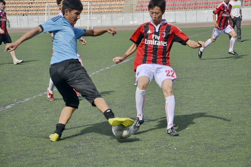 下午4点,随着裁判的哨声响起,比赛开始。我院球员迅速占据了优势,开场几分钟内便靠一记点球攻破了对手球门,以1:0摘得开门红。对手也不甘示弱,经过一番周旋接近了我方底线,一球将比分扳平。之后对方又接连进了3球,令我方队员颇受打击,虽然不断在制造机会,但总是差之毫厘。上半场结束,我院仍以1:4落后对手,看台上的我院啦啦队也不禁十分担忧。