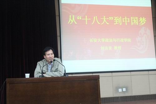 2013年5月17日,信息学院在渭水校区大学生活动中心三楼多功能厅举办了以“学习十八大,传播正能量,共筑中国梦”为主题的学习报告会。报告会由我院党委书记王耀文主持,我校政治与行政学院院长刘吉发教授主讲。学院党委副书记陈晏,学院全体辅导员及学院渭水校区党员、预备党员及入党积极分子400余人参加了此次学习报告会。