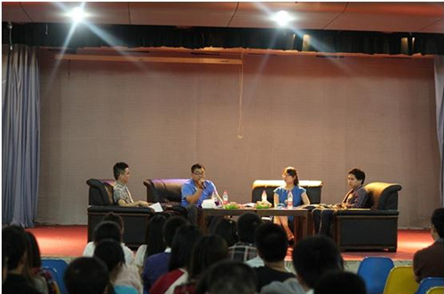 在热烈鼓掌欢迎声中,主持人介绍嘉宾们闪亮登场。此次的访谈分为了三个板块,师兄、师姐们依次从学习、生活、就业方面给大家讲述了他们在工作阶段的经历和经验。