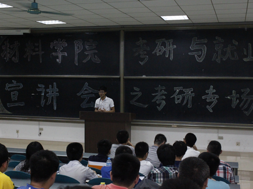 本次会议分为两个环节。首先由准研究生代表发言,考入华中科技大学的欧阳武光同学,考入四川大学的李明东同学,考入我校公路学院的杨涛同学,考入西北工业大学的石凌霄、王舒滨同学,考入上海交通大学的鲁家瑞同学,考入中南大学的谢方宇同学,考入吉林大学的张恒基同学纷纷为在场的大三学子们提供好了良好的建议,并就自己考研的经验和教训为大家做了详细的阐述,之后耐心认真的回答了学子们提出的各类考研相关问题,为大家的考研之路指明了方向。在会议的第二个环节,暨自由交流环节,各位同学纷纷提出自己在考研就业方面的问题,向前辈请教,相互交流、讨论学习,将宣讲会气氛推到了高潮。