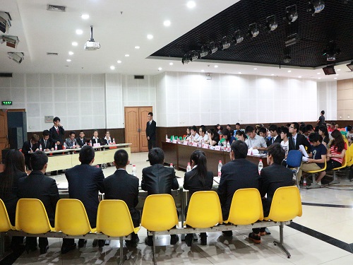 首先由参与此次竞选的竞选人进行了自我介绍,各位竞选人全面自信的自我介绍赢得了老师和同学们的赞赏。接下来竞选人分为两组进行了合作面试和群体辩论,进一步展现了各自的能力和风采。随后竞选人就评委老师提出的问题抒发了自己的见解和策划。最后陈晏客观全面地点评了竞选人的表现,为竞选人提出了更高的要求,寄予了更大的希望。