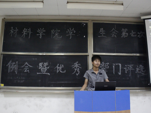 会议第一项是学生会各部门进行上半年工作总结PPT展示,各个部门详尽阐述了过去一年的工作成果与不足之后,由主席团对各部门干事提出问题,并由干事进行答辩。会议第二项,团委副书记刘桐进行发言,她动情得谈到了这三年在学生会的点点滴滴,为她学生会的落幕画上了一个完美的句号;院学生会主席商敬东对大家这一年在学生会的表现表示肯定,同时也指出了存在的不足,最后谈到务实的话题,他希望大家继续努力,寻求更大的进步。
