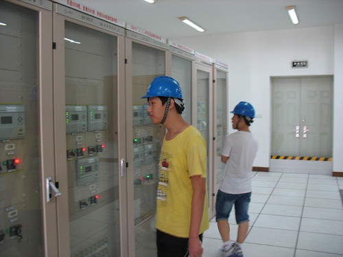 观摩学习队由5名我院2012级学生组成。在经过简短的集合和注意事项说明后,5名学生分成两组,在变电所师傅的带领下分批参观保护室,控制室。在参观过程中师傅具体给我们介绍了变电所的工作流程和原理,虽然非常抽象难懂,但这些丝毫不能消磨队员们的参观热情和积极性。在经过短暂的休息后队员们又以饱满的精神投入到参观学习中。