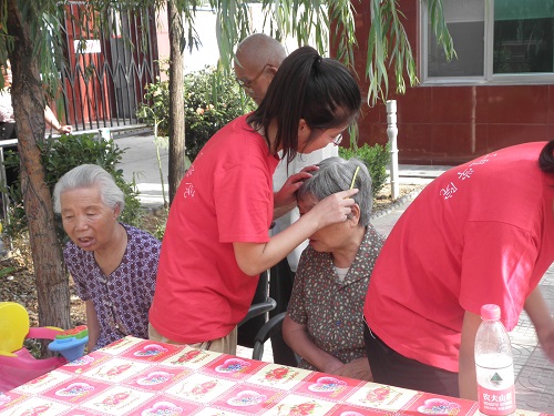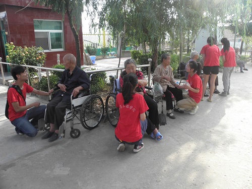 队员们与记者一同到达福利院时,老人和残障人士们正准备吃早餐,队员们马上投入到了帮忙分发碗筷,盛饭盛菜的活动中。饭后,同学们陪老人聊天,帮老人梳头,和老人进行了心对心的交流。老人们时常需要别人的关怀和照顾,队员们的嘘寒问暖很好地帮助老人们排解了心中的苦闷。