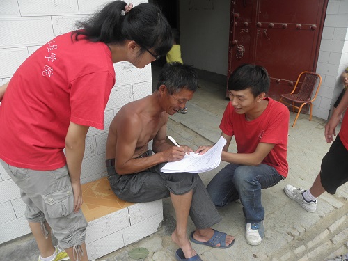 上午10点,队员们开始了最后一项实践活动,发放调查问卷询问村民们的生活情况和农业活动中的困难以及对此次实践活动的看法。村民们对此次活动给予了肯定与赞赏。随后村长代表所有村民向队员们赠与了锦旗,表达了谢意。