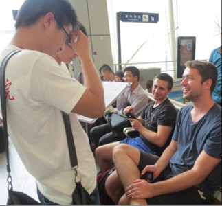 短暂的休息之后队员们来到了T2航站楼,先由卫老师给队员们大概讲解了航站楼的整体布局及运行模式,接下来队员们分为两组调查不同人工服务窗口及自助值机服务处的客流量,并对部分乘客做了问卷调查,其中特别采访了几位外国乘客对咸阳机场各种服务的满意程度及建议。调研完成之后队员们来到T3航站楼进行参观,并与T2航站楼进行对比找出其优势及其内部仍存在的问题。