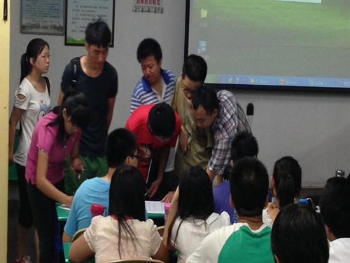 14日上午,实践队员到达雁塔校区后,立即与学校数学建模组张引娣老师取得了联系,和张老师商定了实践队的工作任务等相关事宜,并帮助前来参加培训的同学安排了宿舍。按计划,实践队将完成协助我校数学建模组与培训学员沟通,并负责管理教室和教学设备,方便老师授课,课后及时打扫教室卫生,为参训同学提供良好的学习环境等多项任务。15日,数学建模培训班正式开课。参加培训的同学热情高涨,老师讲课细致认真,学习氛围浓郁。大家都在为全国大学生数学建模竞赛努力,珍惜培训期间的每分每秒。