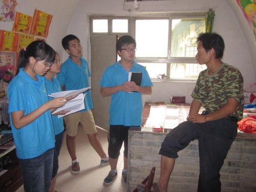 午饭后,实践队的几个小分队在探寻到路线后开始动身前往各村民家。步行一段时间,实践队来到了第一户人家,在村民热情地接待后我们开始与其进行交流,了解到他们的家庭状况,经济来源及对未来的展望。之后,与村民合影留念。接着实践队来到第二户人家,在进行调研的同时,村民将实践队领进他们的窑洞,实践队对当地的住房问题进行了调研,对窑洞的结构与用途有了较深的了解。在走访了一些人家之后,实践队收获颇丰。下午六点,几个小组安全回校。晚饭后,各小组开始交流各自的了解情况,是我们的调研更加全面广泛。