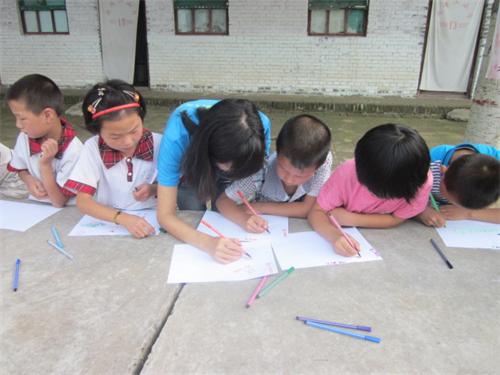 考虑到年龄问题,我们将一二三年级分为一班,四五六年级一班。相应的将实践队队员分为两个小组进行支教。队员们给一二三年级的学生们上美术课,教他们画画。因为学校设备不足、老师不够等问题,孩子们平时接触不到美术课,因此上课时显得很兴奋。之后,队员们给学生辅导作业,耐心给他们讲解不会的问题。课间,队员们与孩子们玩游戏,气氛十分愉快融洽。四五六年级以课程为主,队员们前一晚就精心备课,课程主要针对数学和英语,上课时队员悉心向同学们讲解,俨然变成了一个严肃认真的老师,孩子们也专心听讲,积极与老师互动交流,课堂情况良好。课间,实践队与学生们共同组织了一场接力赛与跳绳比赛,并举行了简单的颁奖仪式。因为之前了解到九峰山小学地处地震带,实践队在大课间为学生们介绍了相关的防震知识并组织他们进行了一场防震演习。